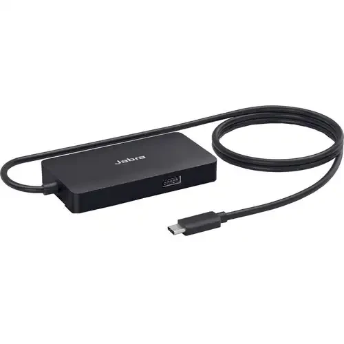 The Jabra PanaCast USB Type-C Hub is a smart and adaptable connection solution that has been painstakingly designed to streamline and enhance your workflow. This hub, designed for use with USB Type-C-equipped systems, acts as a centralized hub for connecting peripherals such as the Jabra PanaCast and Jabra Speak devices, reducing cable clutter associated with various connections. Two USB Type-A ports are provided for diverse peripheral connections, one USB Type-C connector is provided for contemporary devices, one RJ45 port is provided for high-speed Ethernet connectivity, and one HDMI port is provided for smooth video output. The USB Type-C and Type-A connectors have USB 3.0 super speed capabilities, with a 5Gbps communication rate. This guarantees that data is sent quickly and efficiently between the hub and any attached peripherals, improving overall system performance and responsiveness. The hub's HDMI connector supports resolutions of up to 4Kx2K@30Hz, providing a visually engaging experience for things like video conferences, presentations, and multimedia consumption. The high-definition output assures clarity and precision, leading to an engaging and professional user experience. The hub's flexibility is enhanced with VGA compatibility with resolutions up to 1920x1200@60Hz. This capability allows for a wide range of display options, making it compatible with older monitors or projectors that may not support HDMI. The Jabra PanaCast USB Type-C Hub is more than just a connection; it's a complete solution designed to improve workplace productivity and functionality. Its intelligent design, along with modern capabilities like high-speed USB 3.0, 4K HDMI output, and VGA compatibility, makes it a vital tool for professionals who want a smooth, high-performance communication experience.