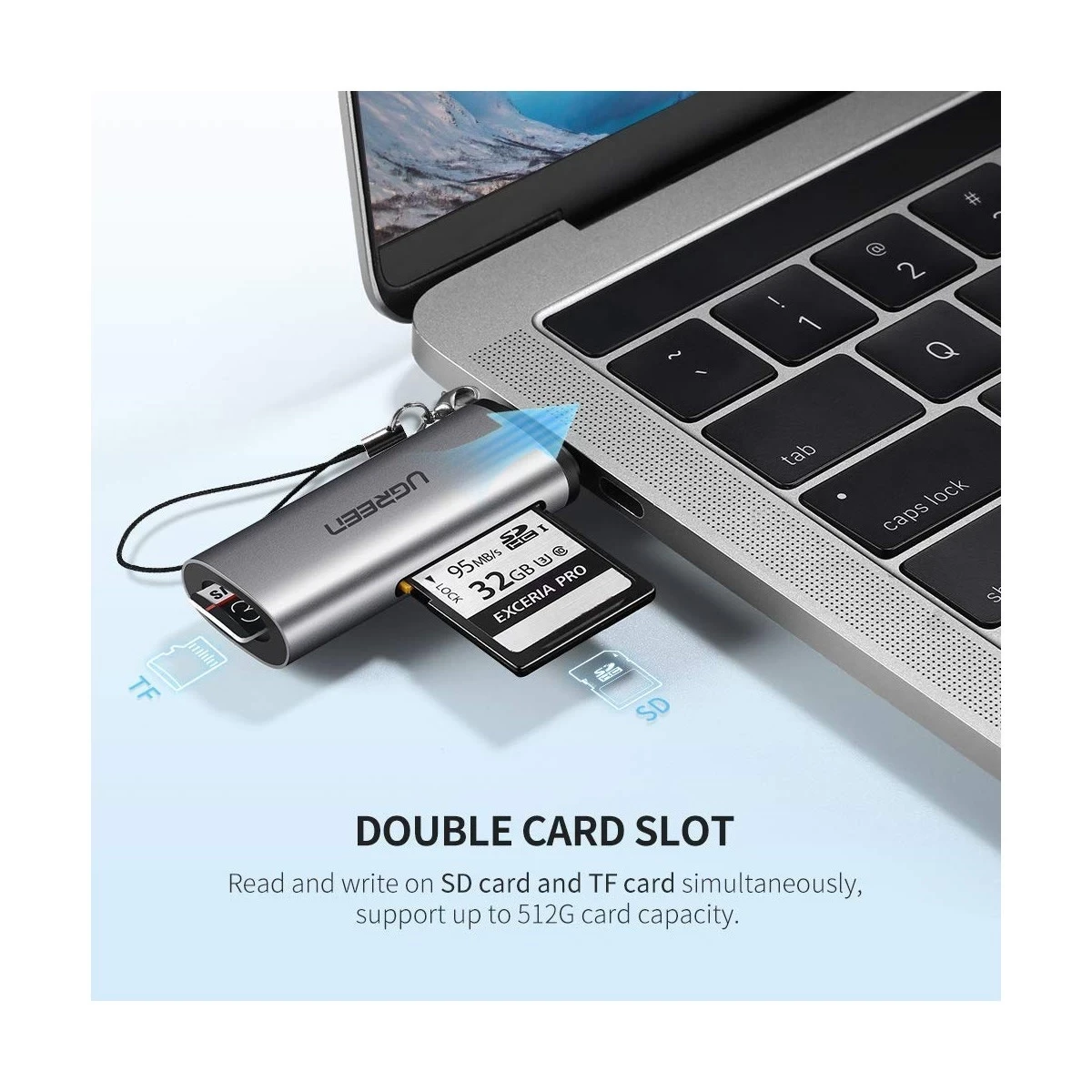 Part no: 50704, 2-in-1 Type C Card Reader is an ideal choice for fast and efficient data syncing from TF/ SD cards to a USB-C laptop or OTG phone, Super Fast Speed at 5Gbps Max, Read 2 Cards Simultaneously, Keychain & Travel-Friendly, The card reader is also backwards compatible with the UHS-I cards, and non-UHS cards, No drive needed for various of the operation system, such as Mac OS 10.x, Windows 7/8/8.1/10, Linux, Android OS, Compatibility: Samsung S9 S8 Plus Note9 8, Macbook 2017/2016, MacBook Pro, iMac 2017, Google Chromebook Pixel,Samsung Galaxy Tab S3,Dell XPS 13/15, Lenovo Yoga 900/910, Huawei Matebook, Google Pixel XL, 2, 2XL, LG G7 ThinQ G5, G6, V20, V30, Nexus 5X/6P, Microsoft Lumia 950 XL, OnePlus 5, 3T, 3, etc.